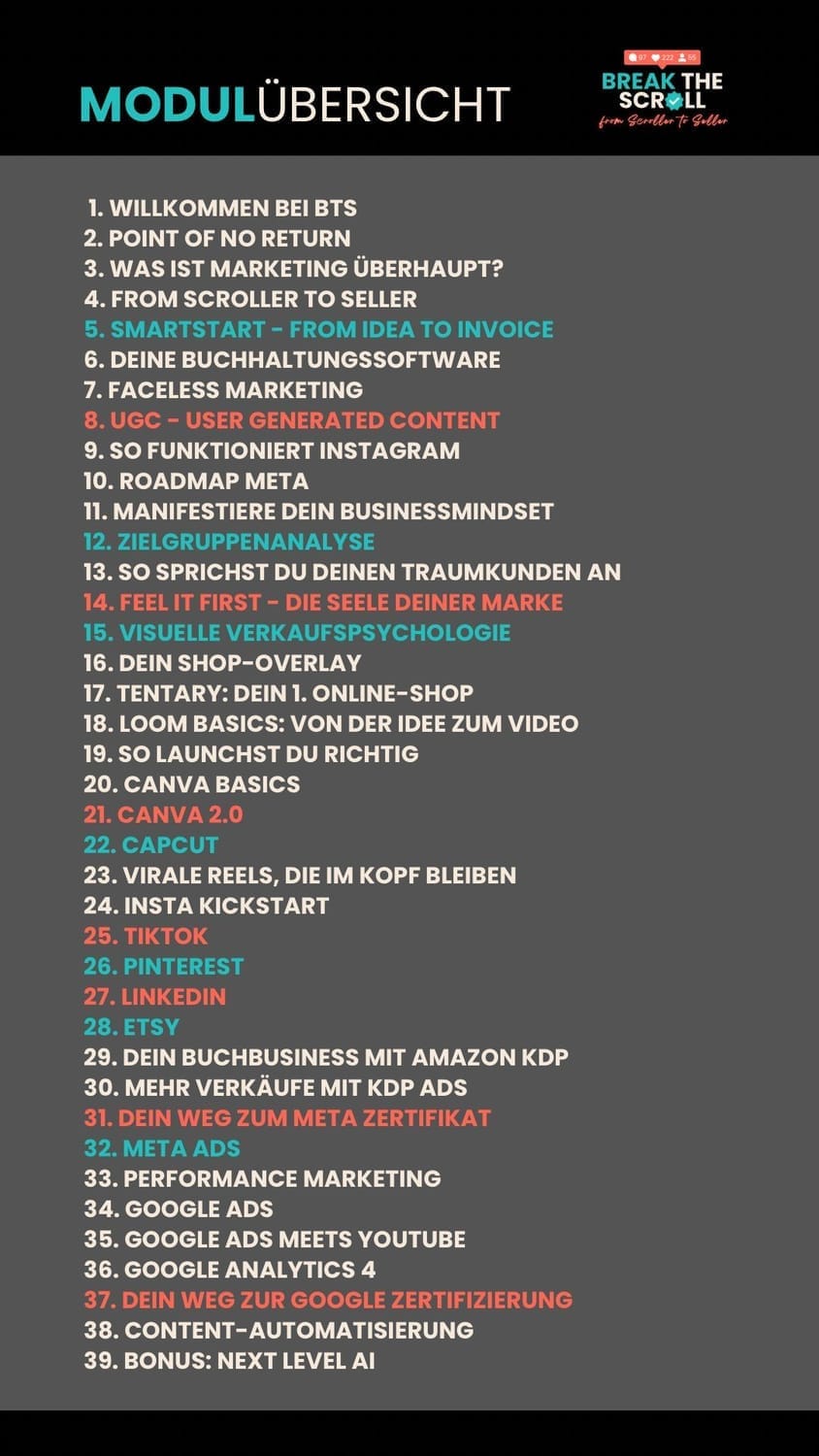 All das ist automatisch inklusive, wenn du dir Break the Scroll sicherst –